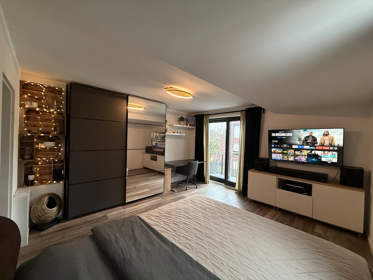 ✔️ Amplia sala de estar de 115 m² + logia de 30 m². Ubicación ✔ perfecta: céntrica y tranquila en una calle de un solo sentido. Los servicios✔ más populares: Camas de🔹 lujo con somier (tamaño king y queen). Smart TV de🔹 65 pulgadas + WaipuTV Ducha de efecto🔹 lluvia para relajarse al máximo. Cocina 🔹 totalmente equipada ✔ Comodidad y extras: Baño 🔹 grande + aseo adicional para huéspedes Aparcamiento 🔹 privado para coches y bicicletas. Ubicación ✔ privilegiada: 🛍️ Supermercados (Rossmann, Lidl, Combi) – 120 m Paseo 🚶♂️ marítimo – 400 m Playa 🏖️ Badeinsel – 980 m Relajación pura❤️