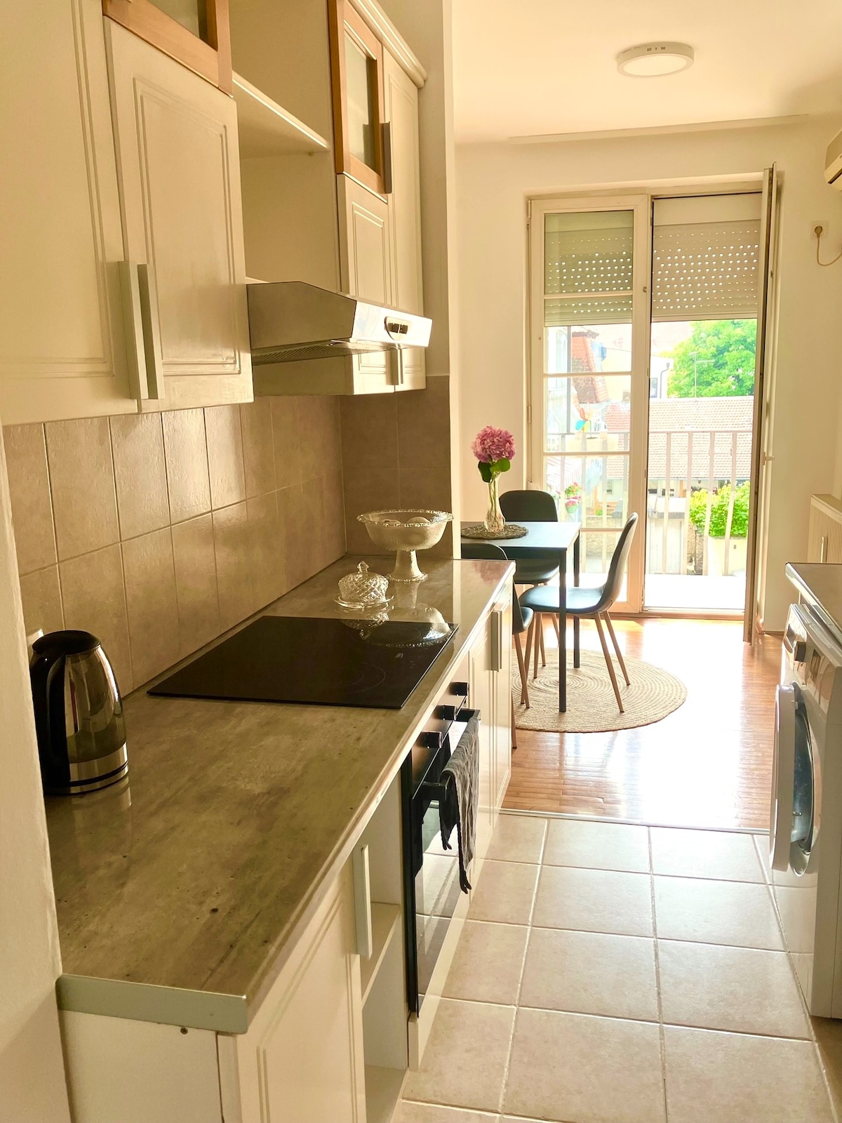 This cozy and charming apartment is located just minutes from the city center, yet tucked away in a quiet, tree-lined street. Surrounded by greenery, it offers a serene atmosphere ideal for rest or remote work. The apartment features all essential amenities, a comfortable layout, and free parking right in front of the building — a rare find in this part of town. Whether you're here for a short stay or a longer visit, this space provides comfort, privacy, and the perfect local touch.