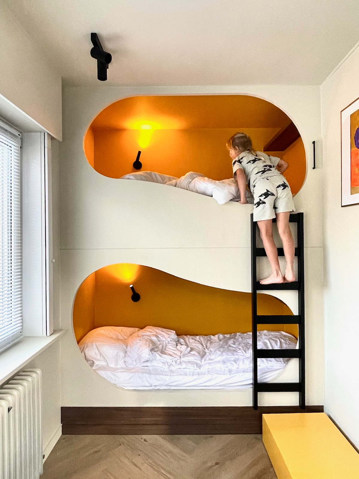 We are Dries and Yuri. We create hotel concepts worldwide, but created Studio Renée for ourselves: high on the 9th floor, one with the sea and feet in the sand. Belgian-made materials, D-Tile bathroom, Mallorcan kitchen tiles, and handpicked vintage furniture. Tip: sleep with the window open, wake to the sound of the waves, and play a record. Quiet beach, city close by, brasserie downstairs, everything within walking distance.