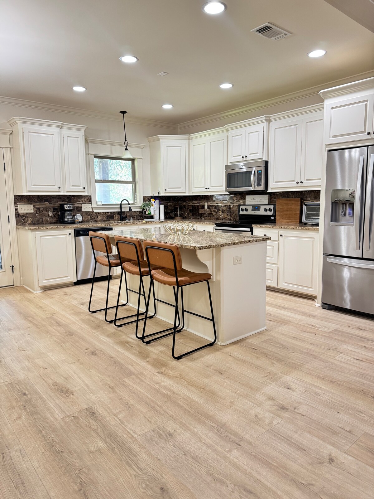 Relájate con toda tu familia o grupo en el tranquilo Green Haven. ¡Te espera una mezcla perfecta de privacidad y comodidad en la zona común para todo tu grupo! Hemos tomado medidas especiales para asegurarnos de que tengas todo lo necesario para disfrutar de una estancia cómoda y relajante. Tres estaciones de trabajo dedicadas junto con estaciones de carga USB ubicadas en las lámparas y receptáculos en cada habitación para tu comodidad. Disfruta de una cocina completa con todos los pequeños electrodomésticos que necesitas y un baño totalmente equipado.