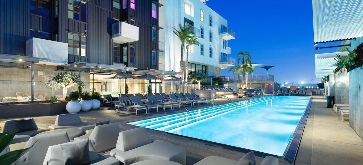 Estudio amplio y luminoso en Los Ángeles con piscina, gimnasio y estacionamiento