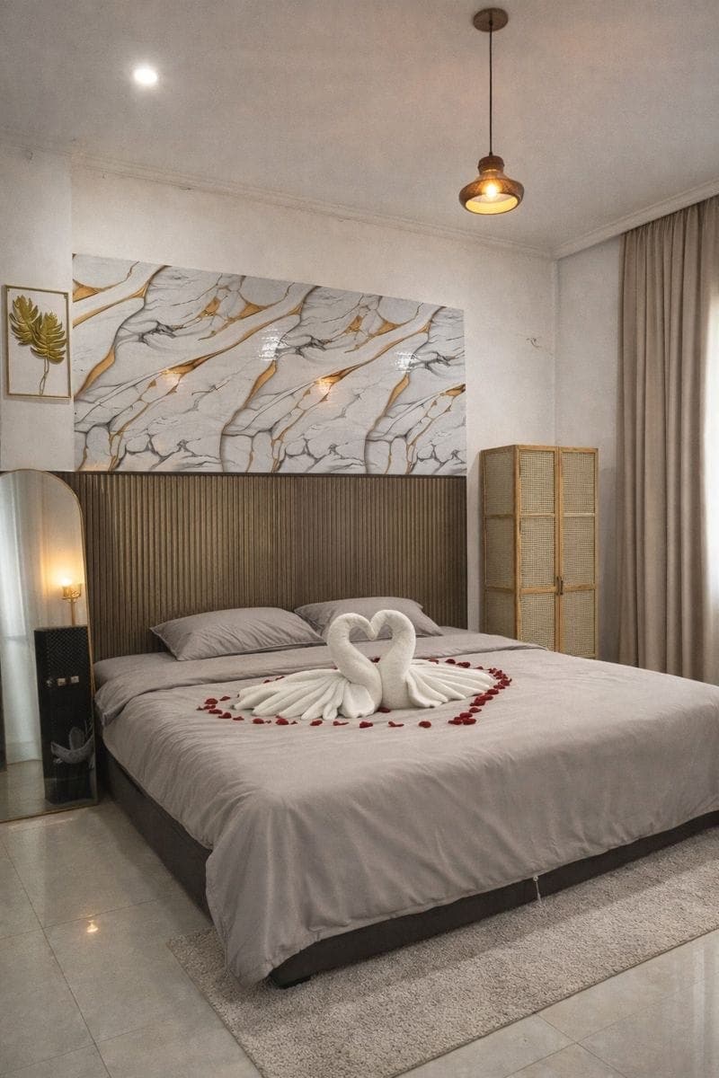 Cozy minimalist place with 2 bedroom on the 3rd floor, just 9.3 km from the airport. Enjoy air-conditioning, a comfy bed, and a private bathroom with a water heater. kitchen available for cooking. Perfect for short/ long stays, transit guests, or business trips. Clean, peaceful, and designed for your comfort