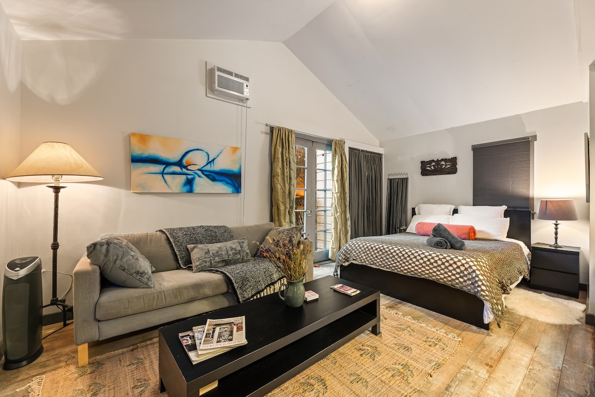 ¡Un oasis seguro y acogedor en una de las ciudades más emblemáticas! Casa de huéspedes cerrada y privada de diseño de mediados de siglo con cocina, baño, sala de estar con grandes ventanales con vistas al patio. Aparcamiento gratuito en la calle (la carretera está muy transitada durante la hora punta). Internet de fibra. Con acceso controlado. Patio. Loft (tiene techo bajo, escaleras). Cerca de Beverly Hills, UCLA, Santa Mónica, Hollywood. Playas, surf, barcos en 20-30 minutos. ¡Disfruta de nuestra casa de huéspedes OG Tiny Home! Escaleras. Techo bajo en el desván. Puede que no sea ideal para personas con problemas de movilidad.