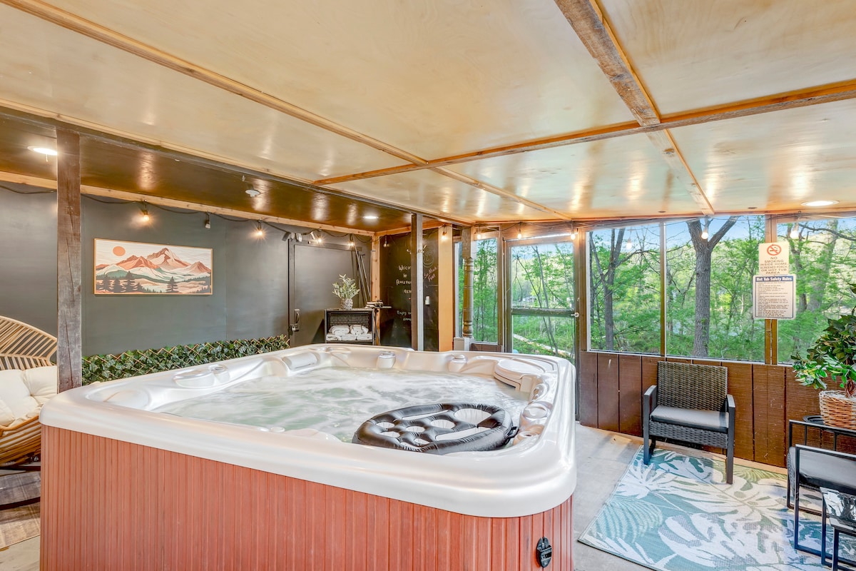 Despiértese a pocos pasos del río, reme en kayaks de cortesía por la mañana, pesque, relájese en el césped por la tarde y descanse en la bañera de hidromasaje bajo las estrellas por la noche. Peaceful River Retreat es un tranquilo refugio frente al agua, ideal para parejas, familias y amigos que desean recargar energías en la naturaleza sin dejar de disfrutar de comodidades acogedoras y experiencias al aire libre inolvidables. A poca distancia en auto de Luray Caverns, el Parque Nacional Shenandoah, la hermosa Skyline Drive, Luray Caverns, rutas de senderismo y ciclismo, bodegas y mucho más