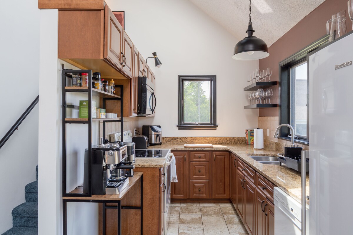 Lo suficientemente espacioso para una familia pequeña, lo suficientemente acogedor para una pareja, una alternativa perfecta a un hotel, para explorar Nueva Inglaterra o esconderse para terminar ese libro (leyendo o escribiendo). TFL es una acogedora suite para familiares, situada encima del garaje, con entrada privada, cocina completa, baño completo, lavandería y muchos toques mágicos que harán que tu estancia sea cómoda, única e inolvidable. La ubicación está justo al pie de las rutas de senderismo del monte Tom, a 20 minutos a pie del idílico centro de Easthampton.