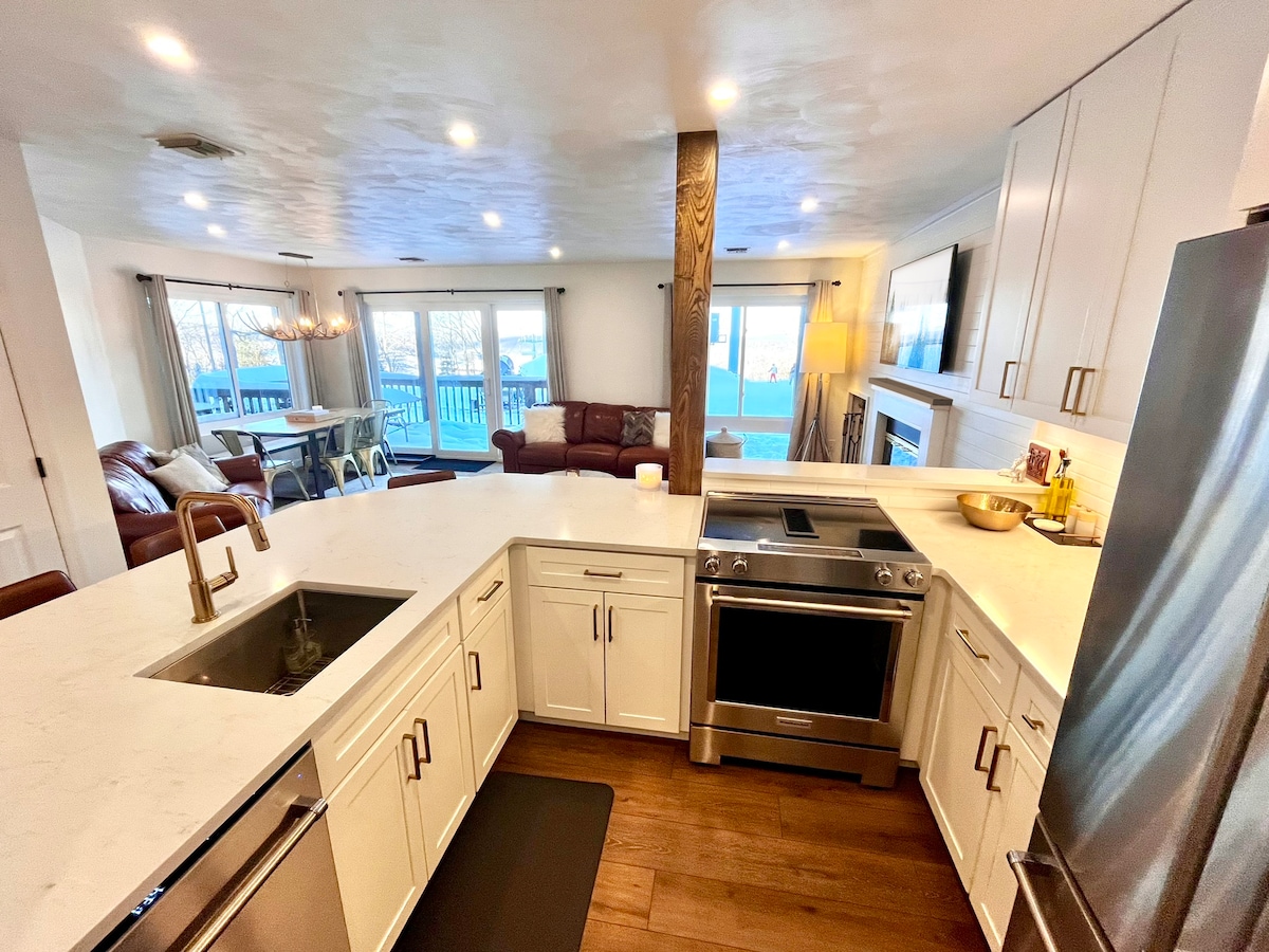 Bienvenido a esta increíble casa de madera totalmente renovada con una enorme sala de entretenimiento que consta de una mesa de billar, mesa de ping pong y más de 🔥 3 dormitorios de tamaño completo junto con una habitación adicional con un sofá cama. Hay 3 dormitorios privados o úsalos como 4 con separación de paredes. Cocina totalmente equipada con encimeras de cuarzo y electrodomésticos de acero inoxidable. Porche delantero grande con un montón de muebles y una terraza trasera con vistas a una granja. ¡Enorme garaje para 2 autos para estacionamiento y una entrada! 🚘