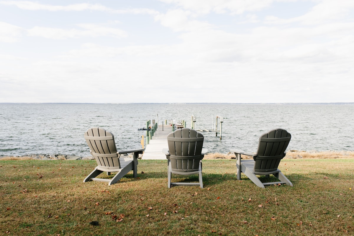 Nuestra clásica casa de campo tiene hermosas y amplias vistas del río Potomac. Despiértate con impresionantes amaneceres y disfruta de un café en nuestro porche delantero protegido, o siéntate y relájate en nuestro propio muelle privado. Nuestra casa está equipada con sábanas cómodas, una cocina totalmente equipada, TV inteligente, wifi y un comedor al aire libre aislado con parrilla de gas, chimenea y patio vallado. Estamos a pocas manzanas de la playa pública, tiendas del centro, paseo marítimo y restaurantes. Los alquileres de carritos de golf se pueden reservar a través de empresas locales.