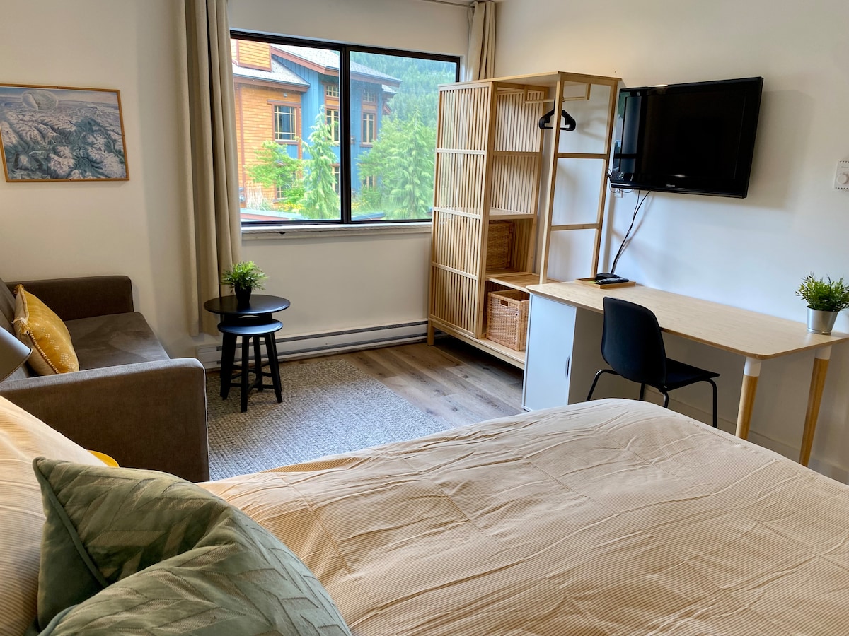Con el mejor patio frente al lago en Whistler, nuestro apartamento de 1 dormitorio + estudio, 1 baño es un sueño de vacaciones. Trae tus juguetes acuáticos para divertirte en el lago o disfruta de un corto paseo en bicicleta o camina hasta el pueblo por el sendero del valle. El pueblo está a solo 5 minutos en coche. Cuando hayas terminado de disfrutar de las increíbles vistas en el patio, los suelos radiantes y la bañera de hidromasaje te asegurarán que puedas relajarte al final de un día lleno de aventuras. ¡No hay nada mejor!