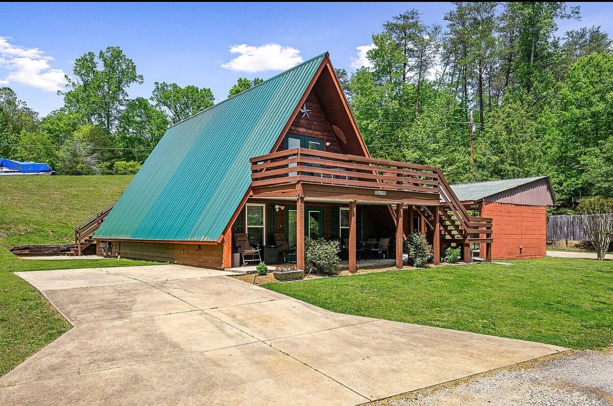 The Lakeview Nature Cabin at Bear Bluff Retreat is located on a wooded 20 acres above and overlooking Wright's Bend on Center Hill Lake near Rock Island State Park. The surrounding area is considered the waterfall mecca of Tennessee with more caves, waterfalls and scenic overlooks per square mile than anywhere else in the United States. This cabin features a nature theme and provides a perfect perch for nature lovers to view birds and beautiful sunsets over the water.