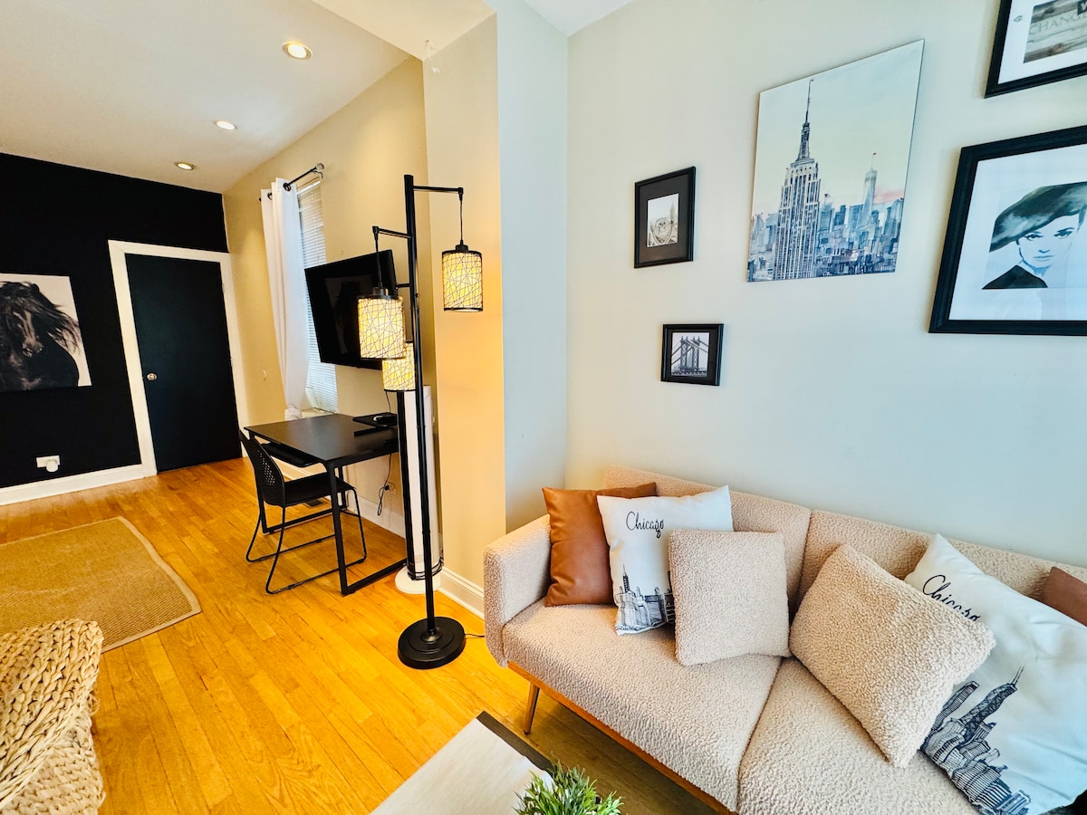 Mi alojamiento está en el corazón de uno de los barrios más populares y de moda de Chicago (Wicker Park/Bucktown) con todo lo que necesitas o deseas a poca distancia a pie: transporte (tren Blue Line) que es una conexión directa desde y hacia el aeropuerto O'hare, restaurantes, vida nocturna, tiendas boutique de alta gama. A 15 minutos de Magnificent Mile, Millennium Park, Wrigley Field. Perfecto para parejas, aventureros solitarios y viajeros de negocios con internet y TV por cable incluidos. Capacidad para 2 adultos cómodamente con sofá cama.