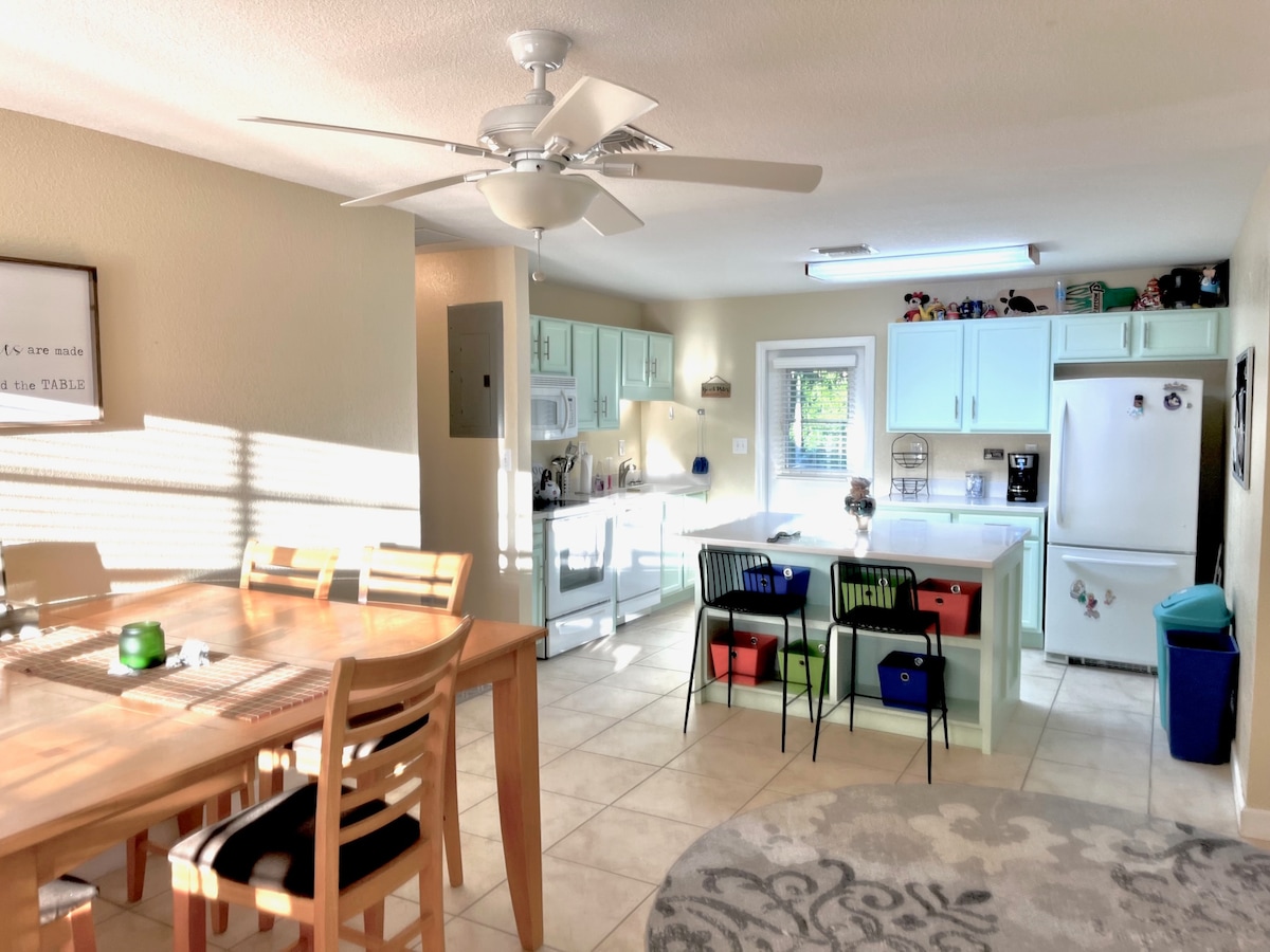 Tómate tu tiempo para relajarte y relajarte en esta tranquila casa a 10 minutos de hermosas playas. Disfrutarás del tranquilo vecindario y del porche protegido con brisa y del jardín de hamacas en la parte trasera con la ducha al aire libre. Un día en la playa está a pocos minutos. Muchos restaurantes y actividades locales para que los disfrutes, o siéntate y lee un libro de la librería. Cocina totalmente amueblada. Cuarto de lavado en el lugar. ¡O Disney, Universal Studios y Sea World están a poco más de una hora en auto!