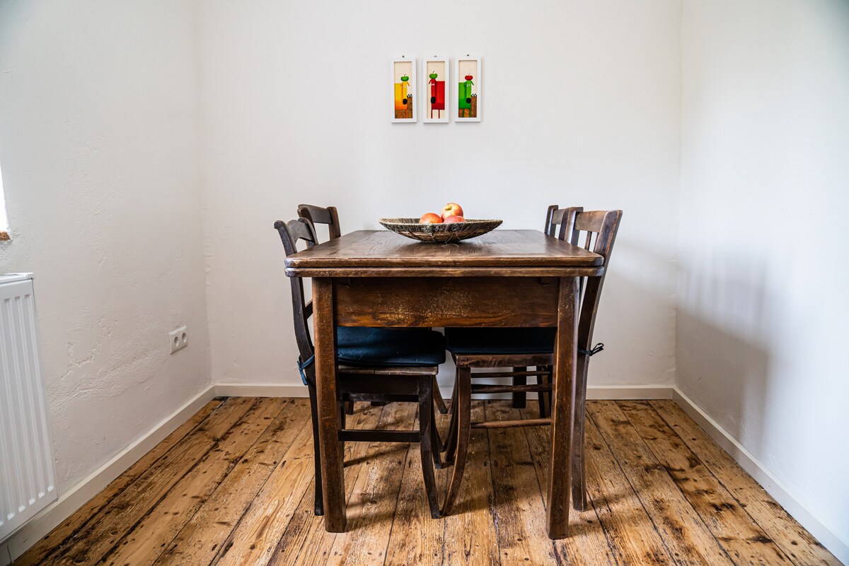 Unser "Häuschen" liegt direkt am Waldrand hinter unserem Wohnhaus, als Teil eines alten Mühlhofes! Zum Nachbarn sind wir 1 Kilometer entfernt und der nächste Supermarkt befindet sich in 6 Kilometer Entfernung. Es handelt sich um keine Luxusherberge, doch wer absolute Ruhe und ein Wanderparadies inmitten der schönsten Natur sucht, ist bei uns genau richtig! In der kalten Jahreszeit MUSS zusätzlich mit dem Kamin geheizt werden! ALLE, DIE MEHR KOMFORT SUCHEN, SCHAUT EUCH MEIN ANDERES INSERAT AN!