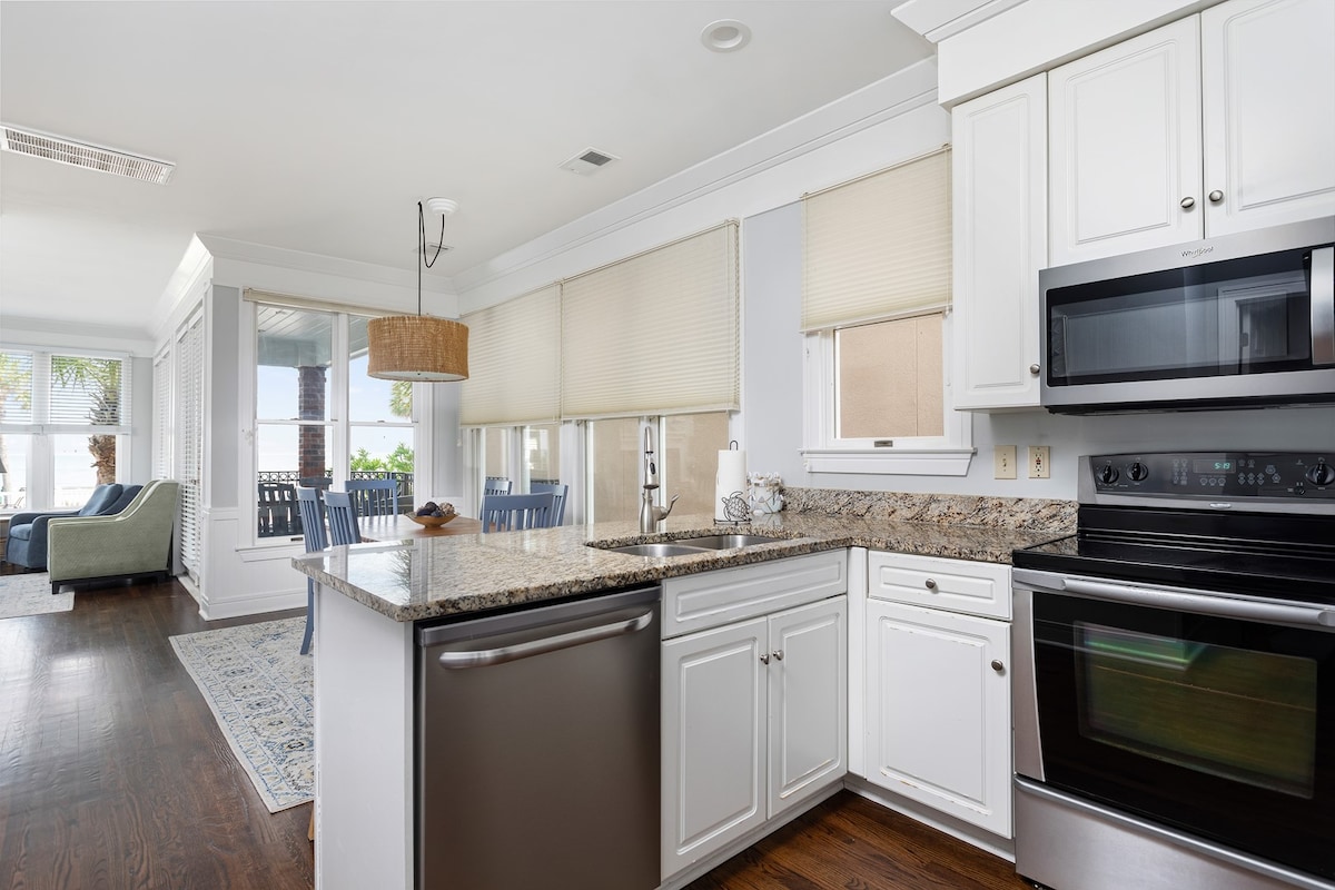 ¡Despiértese con la brisa del mar en Captain’s Quarters en Wild Dunes! Esta casa de estilo pabellón, recientemente renovada, cuenta con 4 dormitorios y 4 baños, capacidad para 10 personas, baños en suite, una cocina profesional de alta gama y servicios para familias, como equipo de playa, cuna, silla alta y juegos. A pocos pasos de la playa, las piscinas y la cafetería junto al mar, ofrece un lujo costero de primer nivel con la comodidad de poder llegar a pie a todo.
