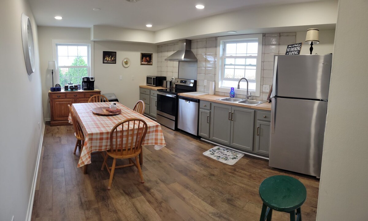 The Berlin Boho Bungalow is the dream home of a family of artists—a mother and daughter team, a contractor husband, and adult grandkids. Set on 1.5 acres in historic Berlin, MD. There are two units in the house. This is the downstairs guest house. We invite you to start family traditions here and return year after year. As we lovingly restore this old farmhouse, you can celebrate the transformation of a once-abandoned home into something beautiful.