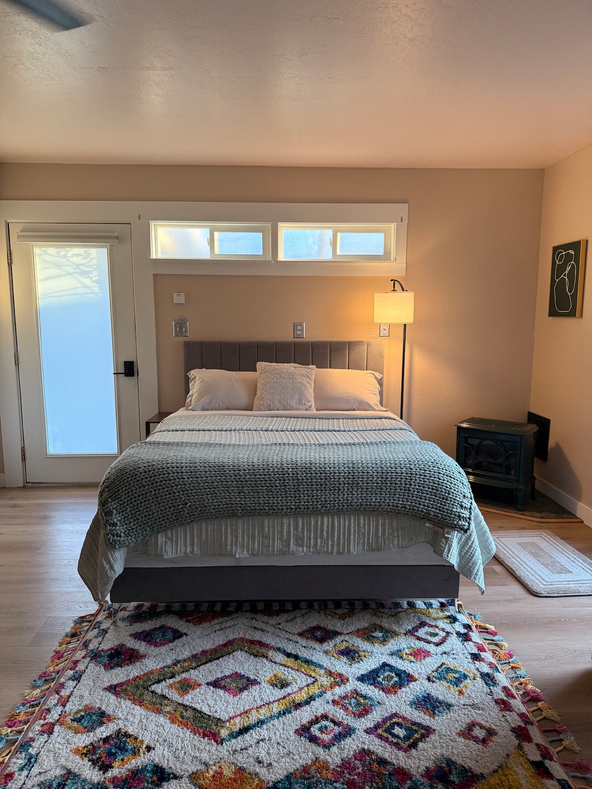 Perfect stop for Hwy 101 travelers! Older, semi-rural, residential neighborhood less than 3 miles from d’town Ukiah & freeway. Studio apartment (700 sq ft) of a multi unit residence. Cozy casita style; private entrance, designated private parking(2), private deck area Bedroom (queen size bed), living room, kitchen table Kitchenette (no oven or stovetop) suitable for reheating, light meal prep and delivery. Mini fridge, coffee, tea, snacks Guests control heat & a/c Cannabis friendly neighborhood