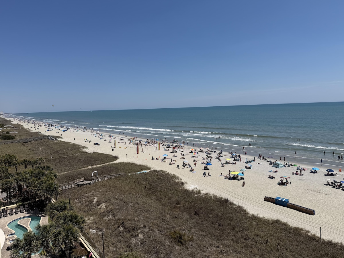 Condominio con vista al mar en Royal Palms, Myrtle Beach. Nuestro condominio de 3 dormitorios y 3 baños en la playa puede alojar hasta 10 huéspedes. Se encuentra en la parte tranquila de Myrtle Beach. Ya sea que estés planeando una escapada romántica o buscando unas vacaciones familiares perfectas para relajarte, nuestro condominio es el destino perfecto para ti. Las habitaciones de 2 camas tienen 2 camas tamaño king y la tercera habitación tiene 2 camas tamaño queen. Kingston Plantation es una parte buscada y prestigiosa de Myrtle Beach.