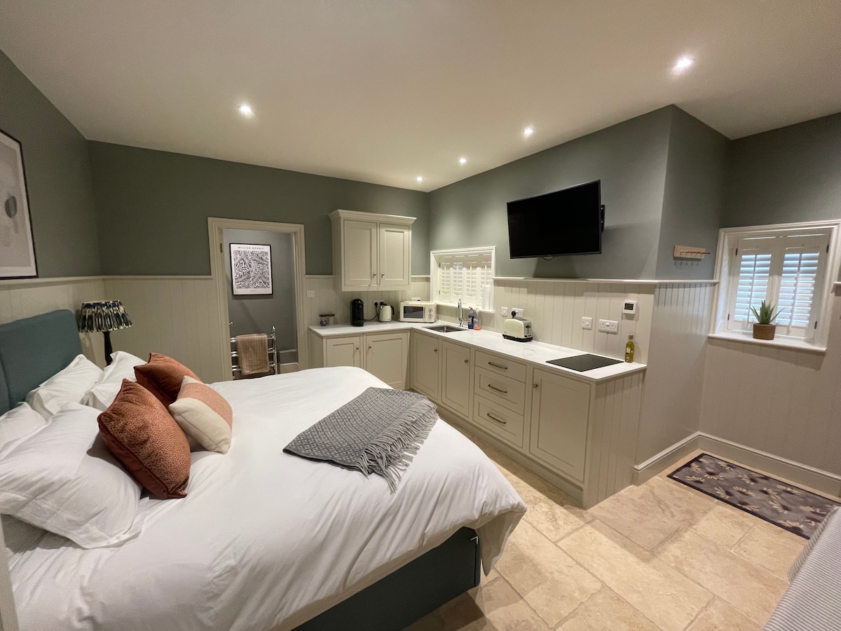 Hermoso estudio independiente con su propia puerta principal, acceso sin escalones y estacionamiento para un coche en la encantadora aldea de Abbots Worthy. Situado en el valle de Itchen, entre la ciudad catedralicia de Winchester (a 8 minutos en coche) y la ciudad comercial georgiana de Alresford (a 10 minutos en coche). Cama tamaño king (también se puede convertir en dos camas individuales) con ropa de cama y toallas de lujo. Cuarto de ducha ensuite. Wifi, Sky TV, cafetera, nevera, microondas, vitrocerámica, tostadora, hervidor de agua, plancha, secador de pelo, armario y perchas.