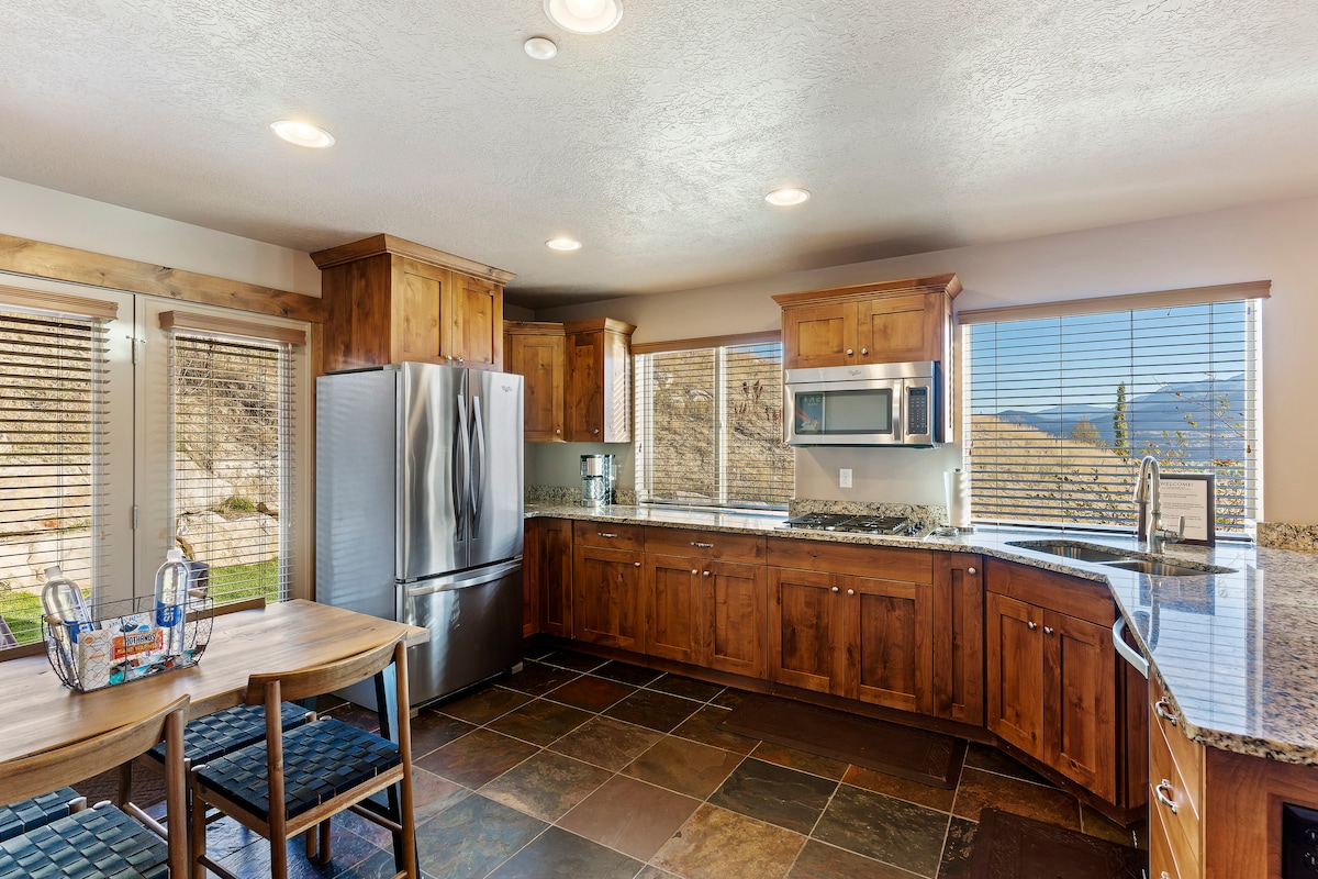 Ven a alojarte en nuestra casa adosada enclavada en la hermosa Eden Utah, rodeada de hermosas vistas a la montaña y al lago. Admira las vistas desde el balcón del dormitorio principal o mientras te sumerges en el jacuzzi después de un día de esquí o snowboard. Snow Basin, Powder Mountain y Nordic se encuentran a 15 minutos en coche. Hay una cocina totalmente equipada, internet de alta velocidad, televisores inteligentes y una sala de juegos para pasar el día. Tiendas de comestibles, restaurantes, boutiques y la destilería están a pocos minutos.