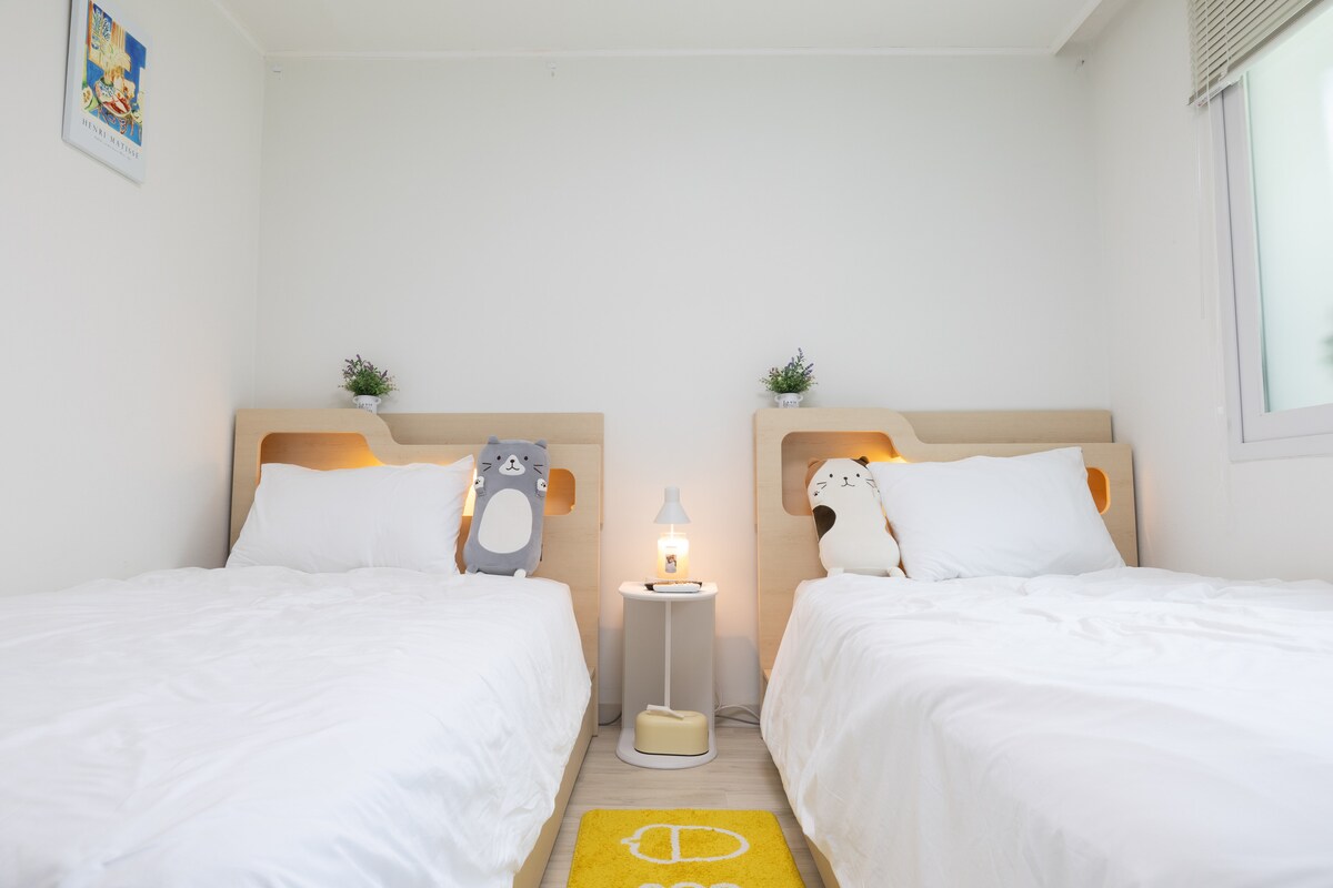 Las "COSAS NORMALES" van en contra de la normalidad del día a día. Quiero proporcionar una falta de familiaridad cómoda a través de este lugar lleno de cosas ordinarias que se pueden ver fácilmente en la vida cotidiana. Durante el día, siente la brisa fresca y la cálida luz del sol que entra por la gran ventana. por la noche, relájate escuchando tu música favorita. Llegada: 3 pm Hora de salida: 11:00 a. m. Recomienda una reservación para 2 personas. (Configuración de habitación con cama doble, 2 camas no disponibles) 3 personas: juego de ropa de cama en un sofá cama en una habitación pequeña