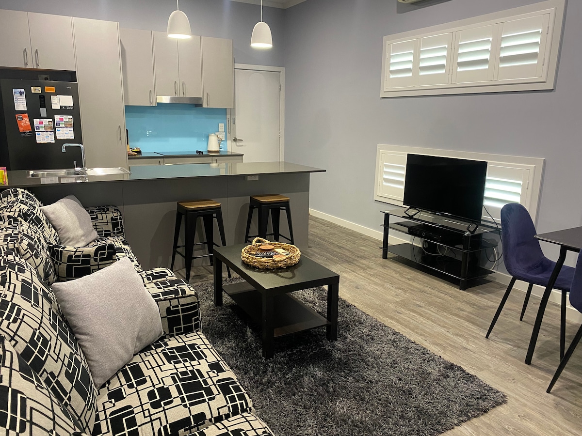 This modern 1 BR guest suite has airconditioning, free wifi & free laundry facilities, located in a quiet street. A portable cooktop will be provided for stays of 3 nights or more. NO PETS ALLOWED. Local attractions are Port Kembla beach and Nan Tien Buddhist temple. A shopping centre, restaurants, & fast food stores are only a 2 minute drive or a 10 minute walk. Wollongong/WIN Stadium - 12 min drive UOW - 12 min drive, or a bus to Wollongong then free shuttle bus to uni.