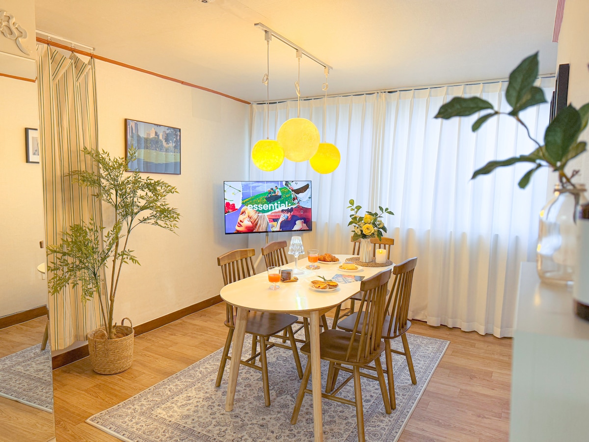 A 5 minutos a pie de la estación de Omokgyo en la línea 5 en Yangcheon-gu, Seúl, Bienvenido a Ariya Stay, un espacio acogedor y cálido en el centro de la ciudad :) Este es un espacio creado por un anfitrión que hace postres caseros y una hermana a la que le encanta viajar. 🏠 Información del anuncio 2 dormitorios, cocina y sala de estar, baño, lavandería | Hasta 6 personas (3 camas queen) | Estacionamiento gratuito para 1 auto 🚇 Accesibilidad perfecta desde el aeropuerto de Incheon (aprox. 1 hora) - Autobús del aeropuerto n.º 6018, bajar en → Omok Trade Stop (5 minutos a pie) - Aeropuerto de Incheon Subir al tren del → aeropuerto Transbordar en la estación del aeropuerto de → Gimpo Línea → 5, bajar en la estación de Omokgyo (5 minutos a pie) Servicios perfectos a 10 minutos a🏡 pie - Tienda de comestibles abierta las 24 horas, lavandería de autoservicio -Olive Young, Daiso, Starbucks, Hyundai Department Store, E-Mart La singularidad de🍰 Ariya Stay - Se puede comprar un pastel con letras personalizadas con una reserva anticipada de 3 días y servicio de entrega en el alojamiento Esperamos que este sea un espacio donde puedas crear recuerdos cálidos con tus seres queridos. ¡Hasta pronto! 🥰
