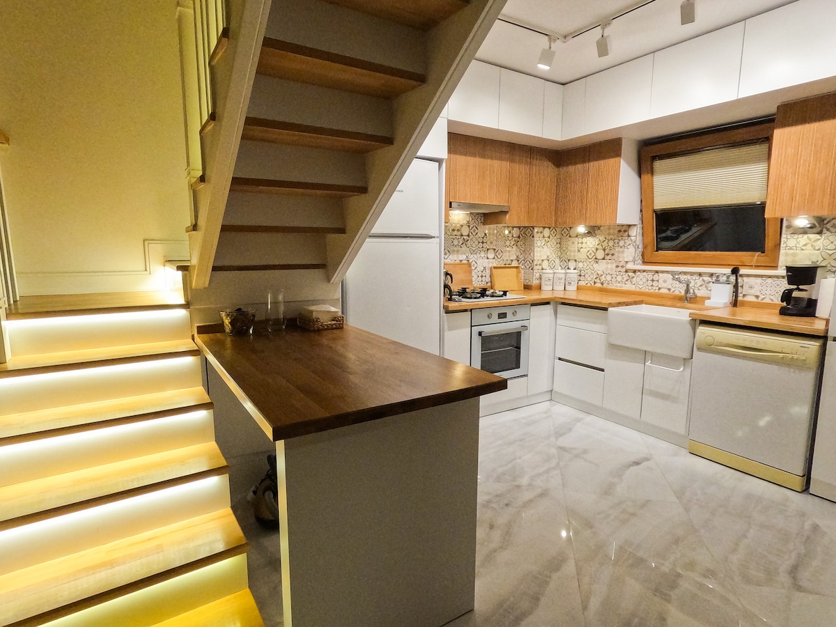 Traje Lexia Deluxe Villa dúplex 3+1 🏠 2 camas dobles 1 cama individual 🛏️ Jacuzzi 🫧 Piscina climatizada 🏊🏻♀️ Terraza con techo de vidrio✨ Vistas al lago y las montañas. 🌊 Chimenea y fogata🪵 Parrilla 🍖 A 5 minutos del centro 🏥🛒 Área de estacionamiento 🅿️ Jardín de 500m ²🍃 Nuestro horario de llegada es: 14:00 🕑 Hora de salida: 11:30 h. 🕛 Nuestros precios son fijos, no cambian en ocasiones especiales☺️