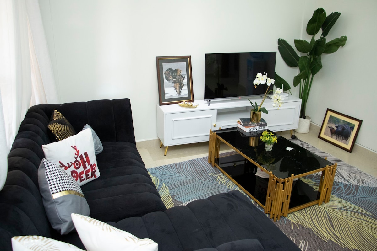🏡 Bienvenido a tu elegante apartamento ejecutivo de 1 dormitorio en el corazón de Lavington, ¡perfecto para parejas💑, viajeros de negocios 💼 o escapadas de fin de semana🌇! ✨ Disfruta de un confort moderno con una amplia sala de estar de diseño abierto 🛋️, una cocina totalmente equipada 🍳, además de una lavadora y secadora para tu comodidad 👕🧺, y un sistema fiable de suministro de electricidad de emergencia ⚡. 📺 Relájate con entretenimiento en un televisor inteligente de 75" (Netflix 🎬, YouTube Premium ▶️, IPTV gratuito 📡) o desconecta con la PlayStation 4 🎮 después de un largo día.