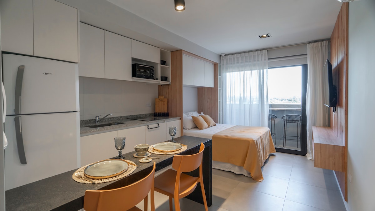 Departamento luminoso, nuevo y moderno, ideal para estadías temporales. Ubicado en una zona estratégica, cerca de todo. Vista panorámica desde el balcón!¡Comodidad y estilo en un solo lugar! Completamente equipado, pensamos en cada detalle para tu comodidad! Laundry en el edificio (con pago por uso) y posibilidad de estacionamiento sujeto a disponibilidad (costo extra). El departamento cuenta con WiFi de alta velocidad.