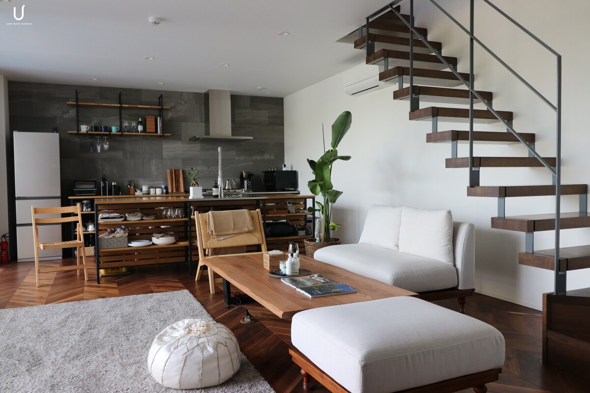 Enjoy the best accommodation experience in Kamakura, Hase, and Yuigahama! 1 minute walk to the beach! 8 minutes walk from Enoshima Hase Station! Enjoy a spectacular panoramic view of Yuigahama from the terrace. Enjoy a comfortable stay that combines the taste of the American West Coast with Japanese space! Free private parking for 2 cars. There is also an outdoor hot water shower and bicycle parking space. 108 m2, can accommodate up to 6people. 3 bedrooms, 1 bathroom, 2 toilets 6 beds