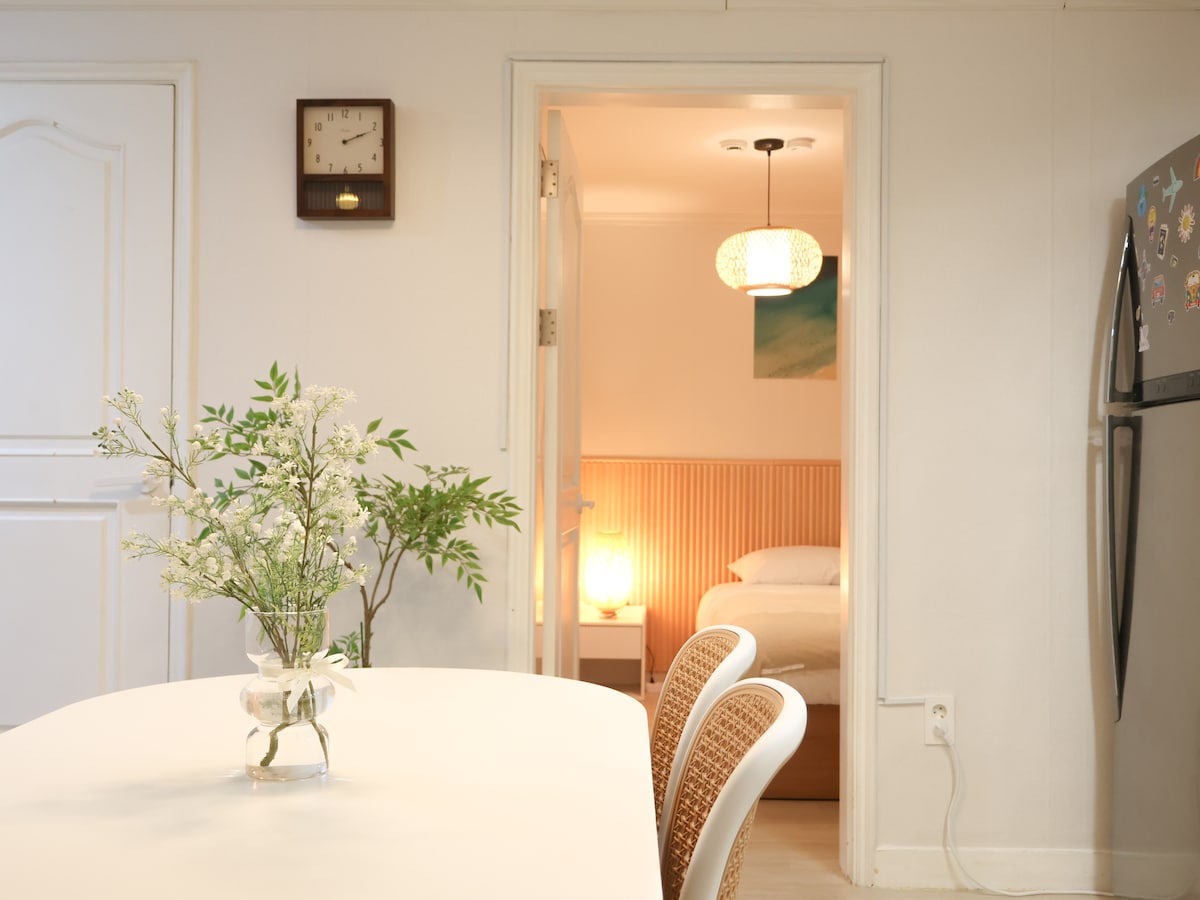 Hola, este es un espacio ubicado en la parte trasera del plan de Cheil entre la estación de Itaewon y la estación de Hangangjin en Seúl. Se encuentra a 5 minutos a pie de la estación de Itaewon y a 10 minutos a pie desde la estación de Hangangjin, y hay instalaciones de conveniencia como tiendas de conveniencia y cafeterías. La casa está en una zona residencial y está muy tranquila. Por eso, una fiesta o reunión que parece que va a causar mucho ruido no es adecuada. El alojamiento cuenta con una pequeña sala de estar, dos habitaciones y un baño. Hay dos, pero hasta cuatro. Es posible. Además, por el bien de un entorno agradable y por razones de seguridad, solo los huéspedes que han reservado pueden entrar. Ten en cuenta que, si rompes esto, es posible que te eliminen. El dormitorio tiene una cama tamaño queen y A partir de 3 personas, se proporcionará ropa de cama previa solicitud. En la cocina, juegos de cubiertos básicos, ollas, sartenes, etc. Está equipada con un microondas, una cafetera, una cafetera y una mesa pequeña y una mesa de comedor. El baño tiene champú, acondicionador, ducha corporal y secadora. Hay wifi disponible y tenemos un televisor inteligente de 50 pulgadas. Estacionamiento - Uso del estacionamiento público cercano
