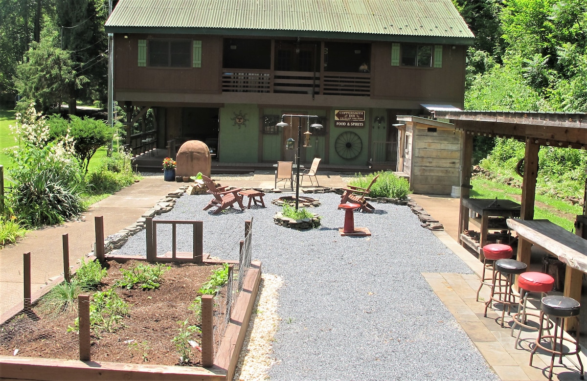 Escápate del ajetreo a nuestro granero histórico renovado en un tranquilo valle privado. 3 dormitorios/1,5 baños. Hay un gran patio dedicado a este edificio, con fogata, luces, jacuzzi y parrilla. ¡Echa un vistazo a nuestros otros dos alojamientos (4 dormitorios y 2 dormitorios) con excelentes valoraciones! ¡Se admiten mascotas, por una tarifa adicional! Envíanos un mensaje para conocer las tarifas. wifi amplificador de recepción celular ¡Organizamos bodas y eventos!