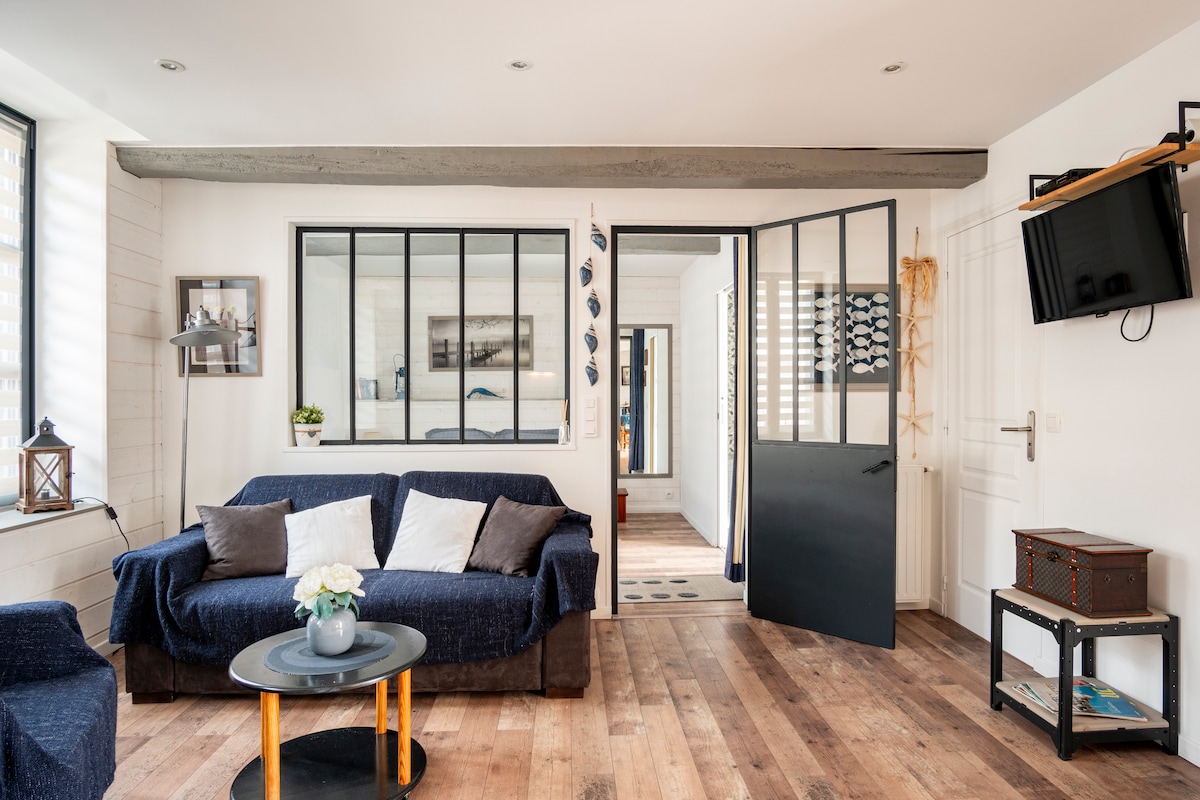 Muy bonito apartamento con encanto con capacidad para 2 adultos y 1 bebé (hasta 1 año) le encantará su decoración, mezcla de materiales, elegante, vintage y frente al mar… Recién reformado, se puede disfrutar de una hermosa terraza de madera elevada orientada al sur para relajarse y disfrutar de los hermosos días. Con una ubicación ideal cerca del puerto, la playa, el centro de la ciudad. Opción: Acceso al espacio Sauna con piedras volcánicas, jacuzzi con diversos masajes a una temperatura de 37°