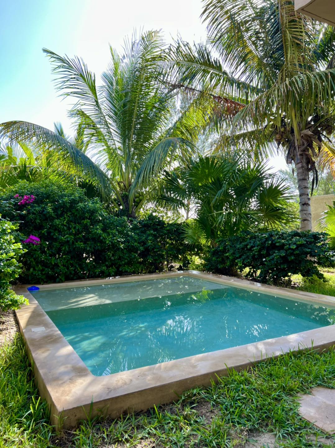 Traditional charm meets modern amenities. For travelers in Mexico nothing quite beats the charm of staying in a traditional thatch-roof “palapa”. Our palapa features a queen size bed, air conditioning, private bathroom and terrace. This charming cottage includes a fully equipped kitchen while the thatch roof provides a pleasant temperature year-round. With windows open to views of the stunning plunge pool, and sounds of singing birds, you’ll feel right at home in your own rustic paradise.