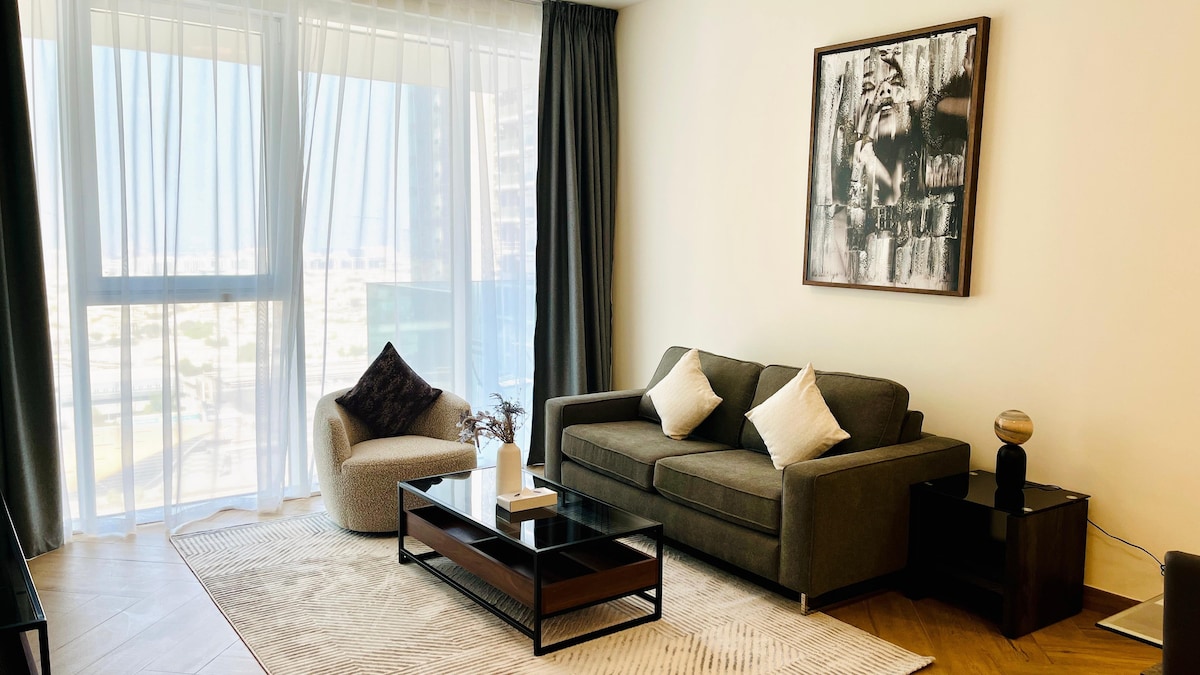 This adorable and thoughtfully designed studio is compact yet perfectly efficient-ideal for two guests. Centrally located near the Dubai World Trade Centre, with the metro just a 7-minute walk away, and only 9 minutes by car to the Dubai Mall. It features a well-equipped kitchen, a cozy sleeping area with a comfortable bed, a Smart TV Every detail has been carefully considered to create a beautiful and convenient space. I'm always available to make your stay as smooth and enjoyable as possible!