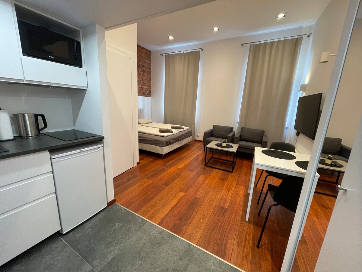 A modern, cozy, air-conditioned apartment in the heart of Gliwice - 100 m from the Market Square. The apartment is located on the first floor in a beautifully renovated tenement house from 1868. Amazing location. Luxurious equipment in the apartment makes this place special and unique. There are various restaurants and shops in the immediate vicinity.