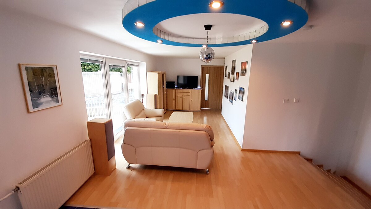 Ofrecemos una casa familiar recientemente renovada con muebles nuevos, equipamiento completo, patio amplio y plazas de aparcamiento. La casa tiene acceso independiente desde la calle Pútnická. Es adecuada para 1 a 4 personas. Encontrará un dormitorio con una cama doble y una cama individual. Para relajarse, hay un cenador con asientos junto a la parrilla. El alojamiento está situado en el centro de Modranka, que tiene un gran acceso al centro de Trnava o conexión a las autopistas D1 / R1.