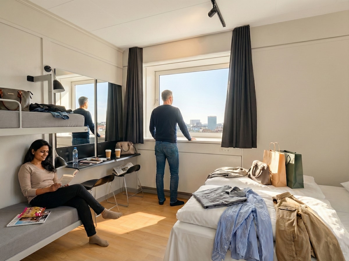 Perfect for families, our Family Room for 4 at Generator Copenhagen offers comfort and convenience. The room features a TV, electronic safe, and a private bathroom with towels, toiletries, and a hair dryer provided. Each bunk includes a personal light, shelf, USB charging station, and under-bed lockers for added security. Ideal for families seeking a comfortable and practical stay in the heart of Copenhagen.
