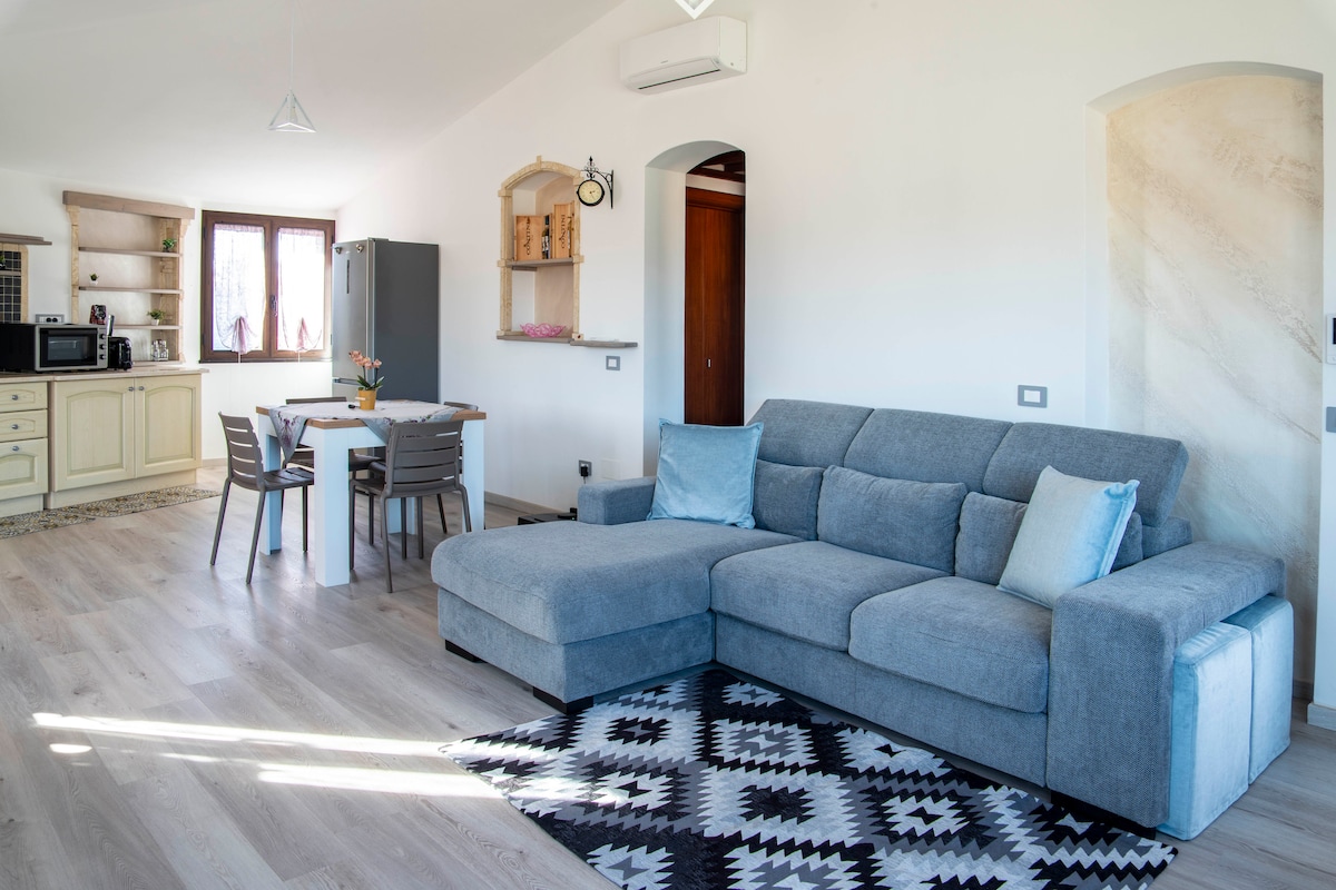 Apartamento independiente, recientemente reformado y cuidado hasta el último detalle, dispone de dos amplios dormitorios dobles con sus baños totalmente equipados; sala de estar con televisión inteligente de pantalla plana, conexión wifi, cocina con lavavajillas, horno y microondas; lavadora, calefacción y aire acondicionado. El apartamento está situado en pleno centro, rodeado de bares, restaurantes, tiendas, plazas e iglesias y a pocos minutos de las playas más bellas del Sinis.
