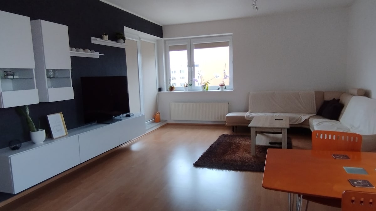 El apartamento está situado en un complejo residencial recientemente renovado, que ofrece un alto nivel de vida, justo enfrente de un centro comercial. El apartamento está totalmente equipado y ofrece todas las comodidades: un dormitorio con una cómoda cama de matrimonio, una sala de estar con un sofá cama (con colchón incorporado) que sirve como una cama adicional para 2 personas, TV, cocina, baño. El alojamiento es ideal para parejas y familias. Gracias a su ubicación, tiene todos los servicios públicos al alcance de la mano: tiendas, restaurantes y entretenimiento.