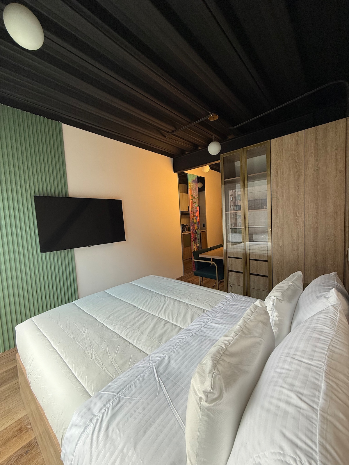 ✨ Moderno loft con vista espectacular en el corazón de Bogotá Elegante loft ubicado en el último piso de un edificio moderno. 🛏️ Cama queen size, cama premium y blackout. 🛋️ sofá y decoración moderna 📺 TV de 50” 🌇 Balcón privado, vista panorámica a Bogotá 🍳 Cocina equipada. 🔥 Calefacción y agua caliente. 💻 Espacio de trabajo. 🧺 Zona de lavandería. 🛡️ Vigilancia 24/7 🍽️ rodeado de los mejores restaurantes, bares y clínicas